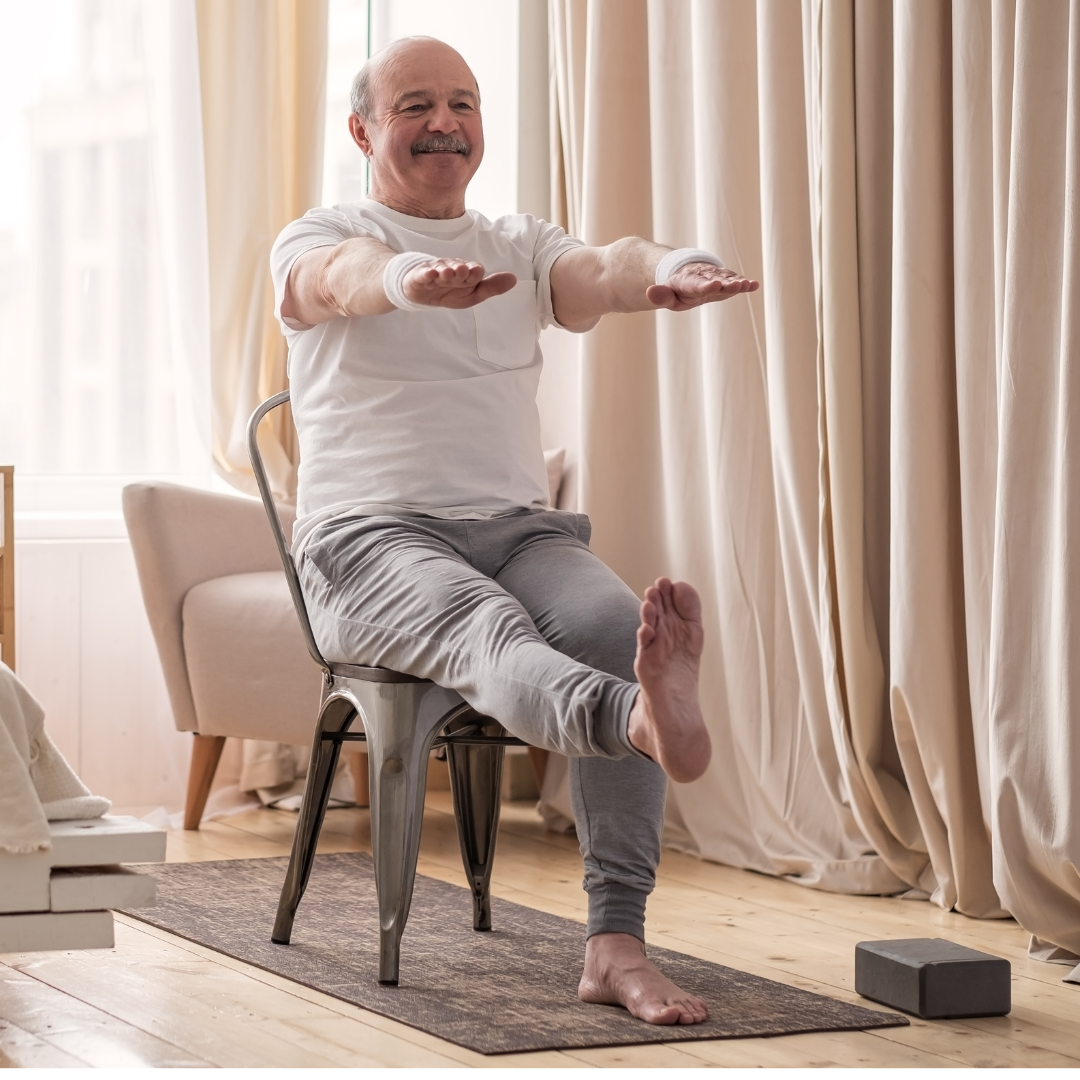 You can enjoy gentle stretches and classic Yoga poses while seated, or use a sturdy chair as support for standing postures, especially helpful in balance-focused practices.